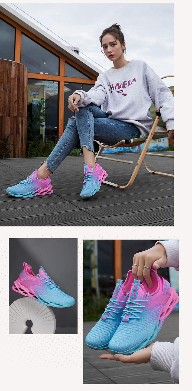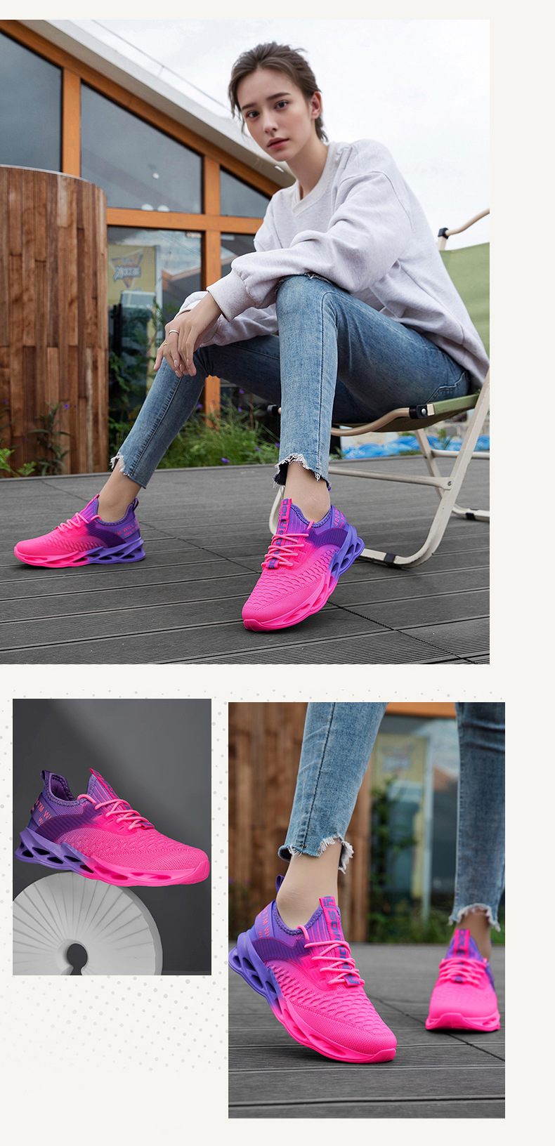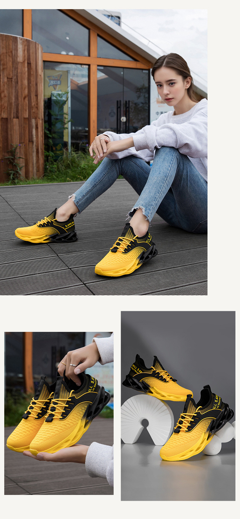 Features: Breathable, well-balanced, lightweight, deodorizing, non-slip, abrasion-resistant, shock-absorbing, lightweight cushioning