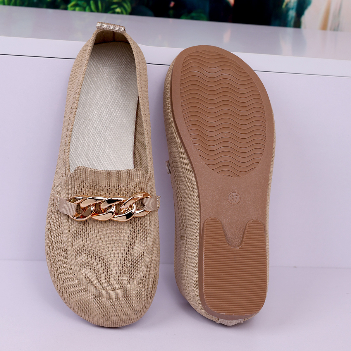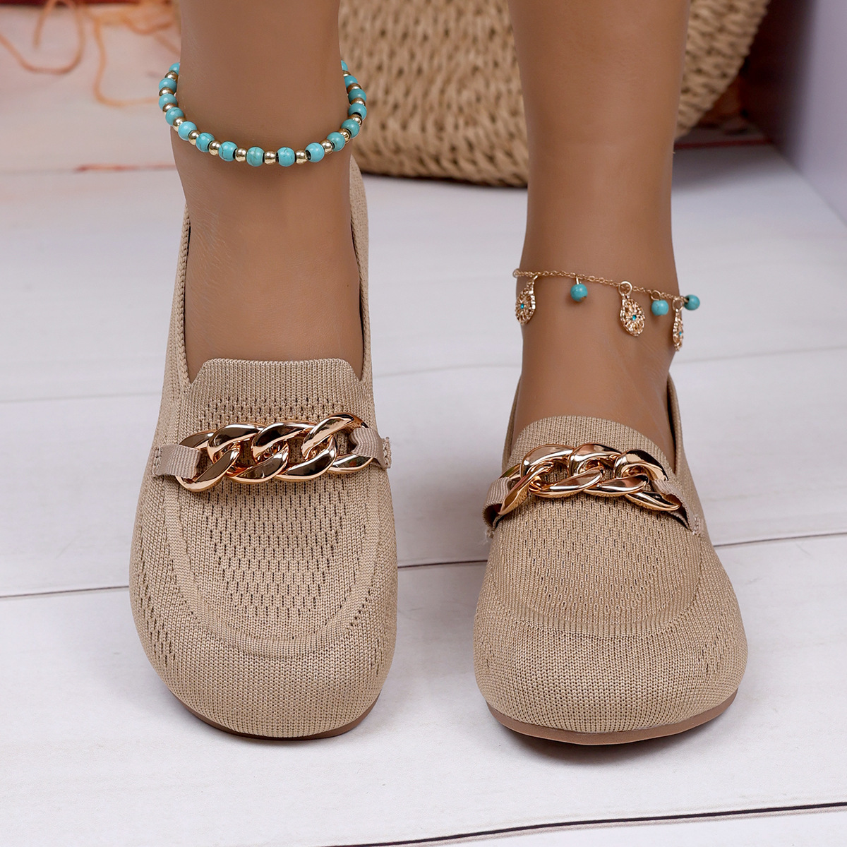 Womens Breathable Metal-chain Loafers With Soft Soles